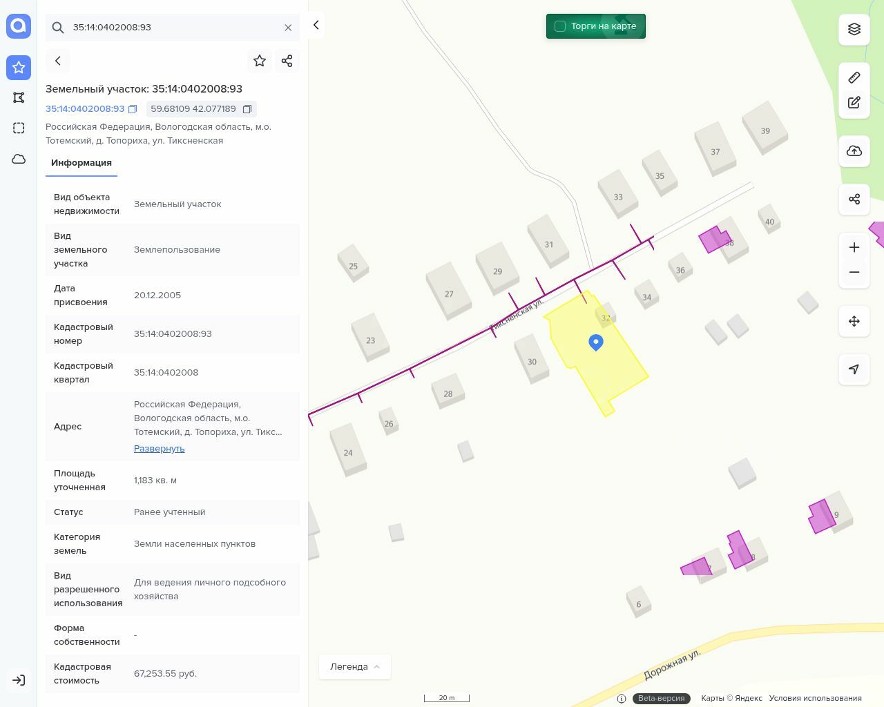 Адрес: Вологодская область, Тотемское сельское поселение Погореловское, дер.Топориха, ул.Тиксненская земельный участок 32. Cведения о наличии или об отсутствии обременений, судебных споров на момент размещения торгов: Обременения и судебные споры отсутствуют Наличие лиц обладающих преимущественным правом покупки лота: Нет Реализуемое имущество продается целиком: Да, при заключении ДКП нет других лиц, владеющих долями в этом имуществе