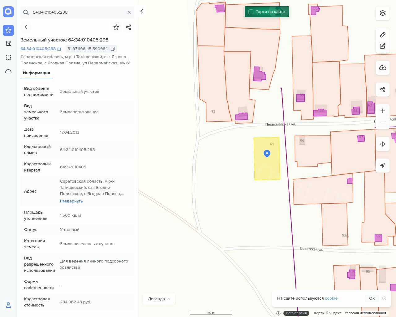 Земельный участок, площадь 1500 +/- 27 кв.м., назначение: Земли населенных пунктов, кадастровый (условный) номер: 64:34:010405:298
